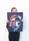 Mine værkers klassiske motiver med portræt og blomstervaser kan noget andet end et klassisk maleri, eftersom det er håndstrikket, og dermed har en markant anden tekstur og stoflighed, der giver motivet liv på en ny måde. Strik er ikke en hurtig proces, men en omhyggelig, langsom og nærværende udvikling af tekstil skabt med hænderne. Det giver plads til eftertænksomhed og føling i en travl hverdag, hvilket jeg er sikker på, at alle strikkere kan nikke genkendende til.